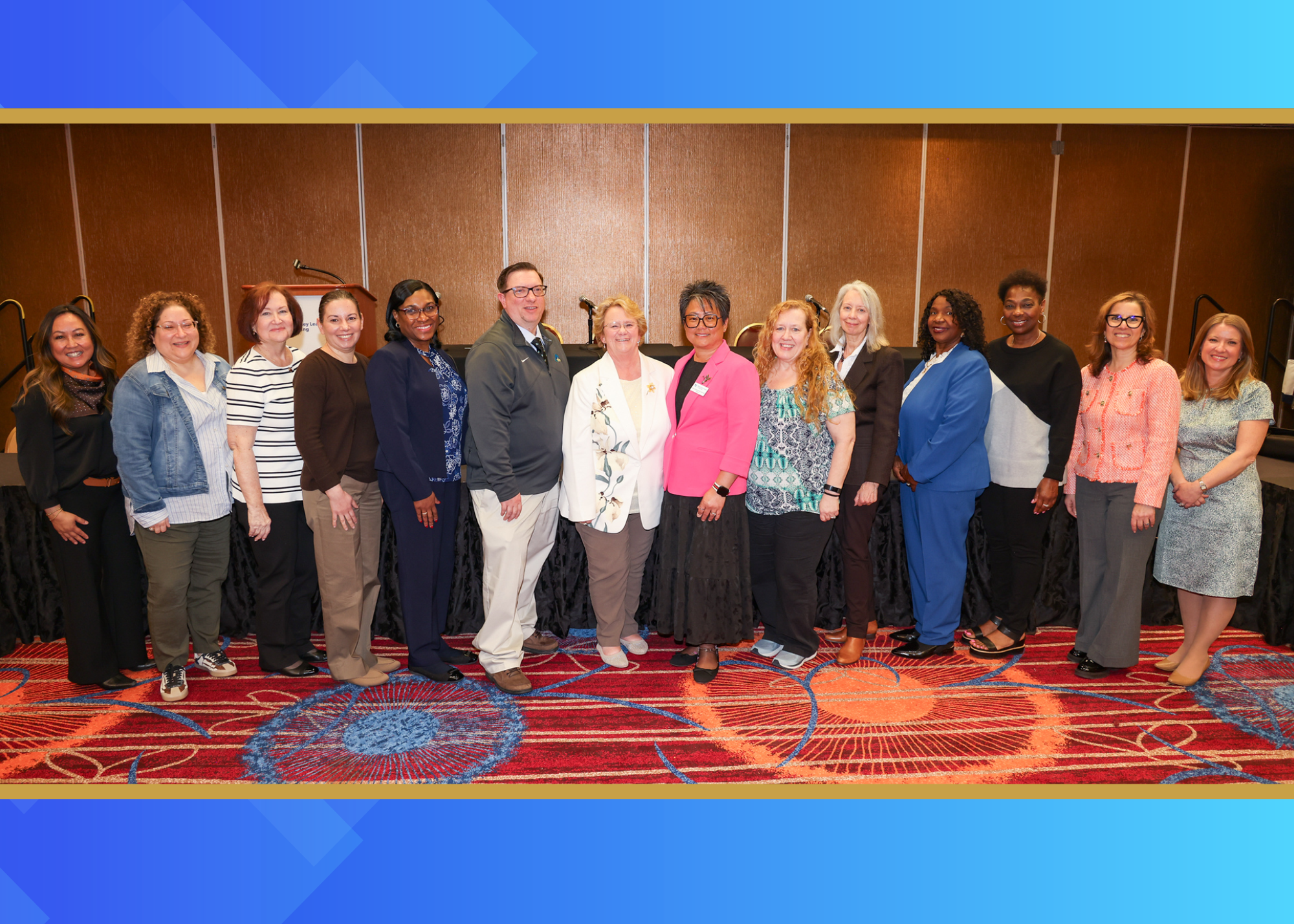 From left to right: Carmen Pelardis, Jeannette Manchester, Mary Koch, Nancy Saliba, Dione Sandiford, Timothy Clyne, Donna Penn, , Illya DeVera-Bonilla, Lisa Camacho, Kathleen Gialanella, Florence Brown, Marcia Nettingham, Giuseppina Pagnotta, and Erica Sciarra.
